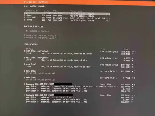 Then, using the "Custom storage layout" during the Ubuntu Server 20.04 installation: