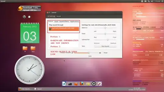 After restarting pc I can see both Jack and Pulseaudio working Ok. But here is another problem, the sound output form the speakers are very low, cpu spikes have increased quite a bit, Hardware devices are not shown. Sound control shows 5:1 sound system where I only have 2:1 sound system.