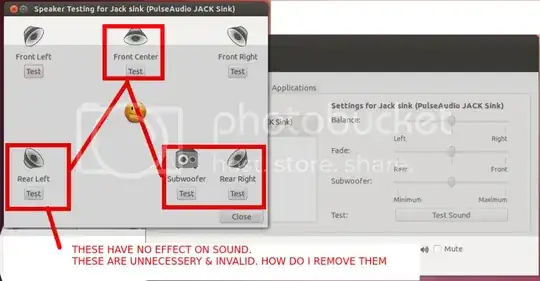 Moreover when I check my sound system through Pulseaudio "test sound" utility, I can see there are six buttons shown, whereas I should only have lest and right buttons as I have 2:1 home theatre (connected on the rear audio port) and a normal headphone (connected on the front side).