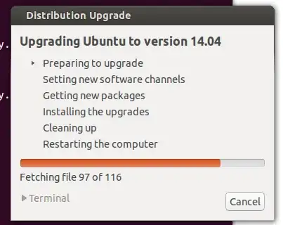 I try to upgrade to the latest release of Ubuntu (14.04 - Alpha).