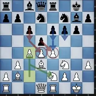 white targets stand. Although the immediate e5 response in an attempt to close the diagonal is possible, black is well able to keep playing on the dark squares and undermine white's d4,e5 setup with early f6, c5 and white has to