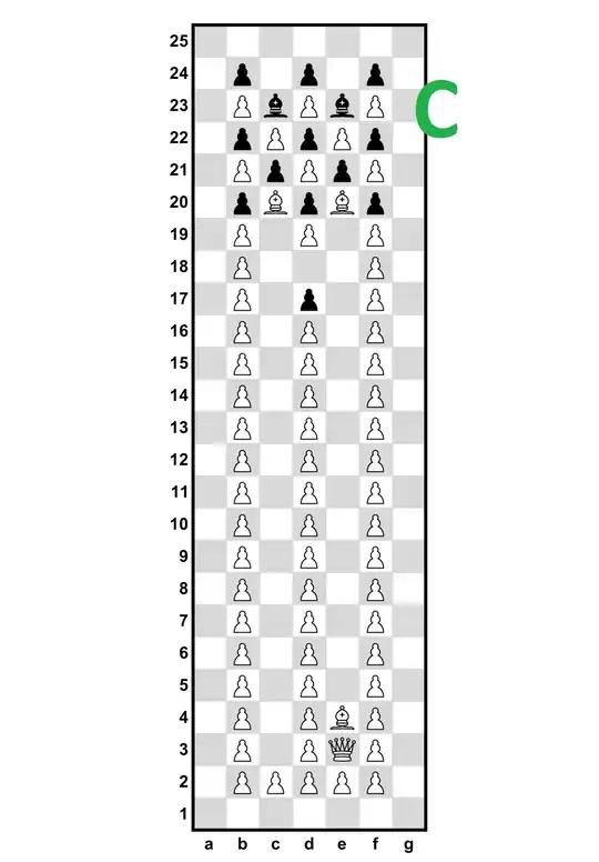 Note that Black is theoretically free to move the pawns on Dq9 and Dr27 forward by one square. However, this move is useless since the pawns are blocked after that move and will have achieved nothing but permanently blocking the rows D8 and D26 for Black, thus removing the threat of the incursion squares I (and Iβ) as well as IV (and IVβ).
