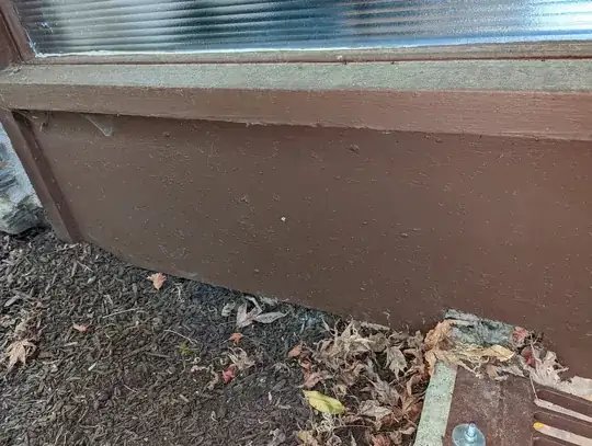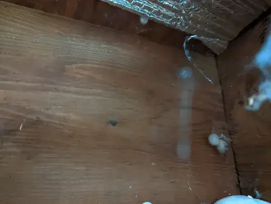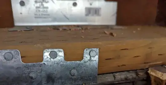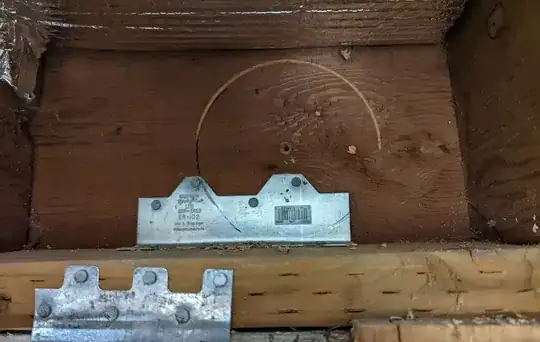 Detail of the bottom of the rim joist meeting the top of the basement/foundation wall, concrete at the bottom of the shot. This shows that there is indeed more rim joist back there.