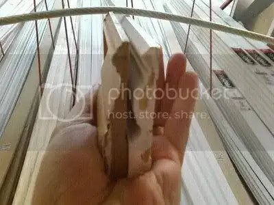 My wife and I recently bought a house, and one of her highest-priority projects was to strip some rather kitschy wallpaper and repaint the walls in our kitchen. This is nearing completion; however, the wallpapered wall had a paper border strip while all other walls have a crown moulding, so now I need a 16' length of the same stuff to paint and nail in place.