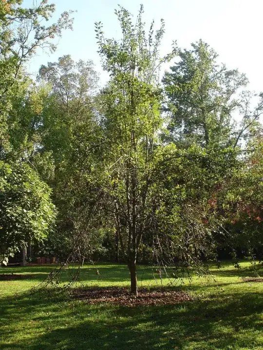 - It looks like you have a good size "tree ring" (cleared area) around the base of the tree(s), once you've finished clearing that area (and the surrounding area) prior to Winter, lay down a 2inch (50mm) thick layer of mulch. Personally I would use good quality compost, start approx 4 to 6 inches (100 to 150mm) away from the trunk of the tree(s) and work out to the edge of the "tree ring". Using compost as a mulch in this situation has the added benefit of feeding the tree(s) naturally and slowly. Then add a fresh 1inch (25mm) layer every year after you've cleared the "orchard floor".