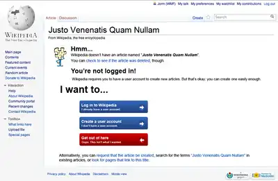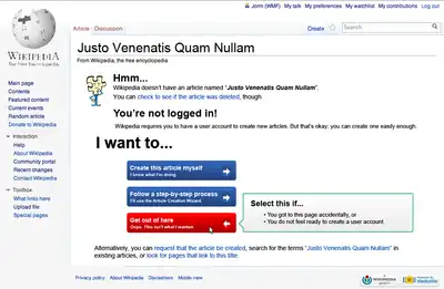 - Redlink: They follow a redlink, which leads them directly to the edit page where they can create the article. Again, they have no introduction to the Wikipedia guidelines for new articles.