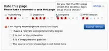 The second phase of this feature was released on the English Wikipedia in mid March. A major change in the interface is the ability for reviewers to specify the source of their knowledge, e.g. if they have an academic degree in a related field (see screenshot). Experiments to encourage user engagement are being performed as well. Dario Taraborelli also published an analysis of the first phase experiment. We're currently expanding the scope of the experiment to include several thousand articles, in order to get results that are more meaningful statistically.