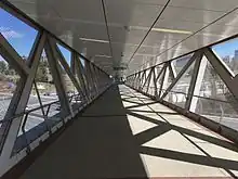 And take the pedestrian walkway. Then you will come down to the street and turn uphill toward MITRE 4. There is also a little bus shuttle. If you see it you can take it.