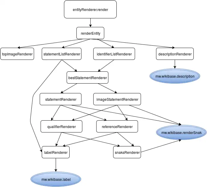 topImageRenderer( entity, propertyId, orientationImage )renders the image on the top right (in left to right languages) and takes a table and two strings as arguments. It is one of the four functions the renderEntity() calls. statementListRenderer( entity ): render a list of statements, takes a table as argumentidentifierListRenderer( entity ): render a list of external identifier, takes a table as argumentdescriptionRenderer( entity ): render the description of an item, takes an string as argumentbestStatementRenderer( entity, propertyId ): render the best (preferred rank if present, otherwise all normal rank) statement, takes a table and a string as argumentstatementRenderer( statement ): render a given statement, takes a table as argumentimageStatementRenderer( imageStatement, orientationImage ): render a statement containing images, takes a table and a string as argumentsqualifierRenderer( qualifierSnak ): render the qualifier of a statement, takes a table as argumentreferenceRenderer( references ): render the references of a statement, takes a table as argumentlabelRenderer( entityId ): render the labels of entities, takes a string as argumentsnaksRenderer( snaks ): render the snaks, takes a table as argument
