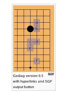 B— black player makes move 1 (default)W— white player makes move 1b— insert a break after the image; The following text will appear below the image.c— draw coordinate markersl— float leftr— float right (default)1–40— specify board size (default is 19). Useful for sizes above 19 and as a hint to SGF.- Example: