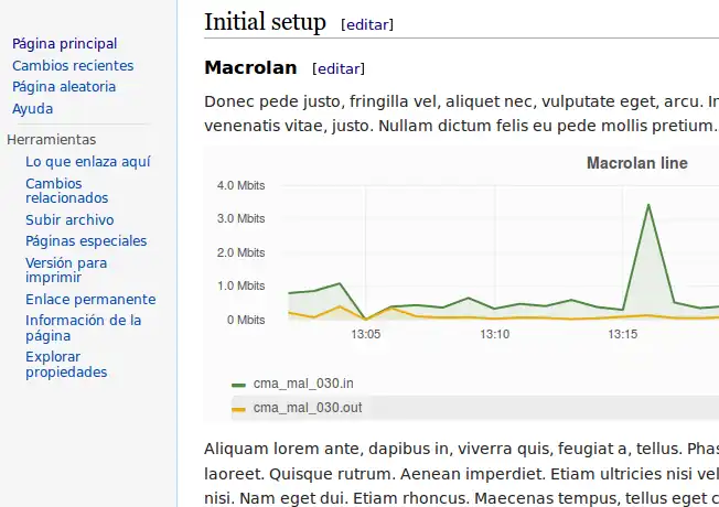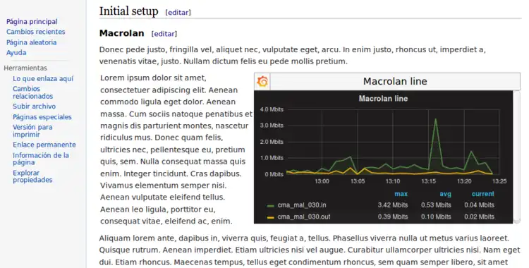 If we join a wiki (Mediawiki) for documentation and a tool (Grafana) for creating dashboards with metrics & analytics we obtain a powerful tool. System administrators can create instructions with panels updated in realtime. (Also you can use Nagvis extension to monitor alarms, warnings, etc.)