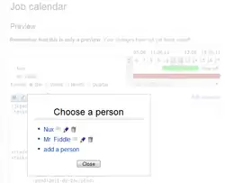 Once everything is set up, just click the Edit calendar link and you are provided with interfaces to add people and entries (activities) for them.