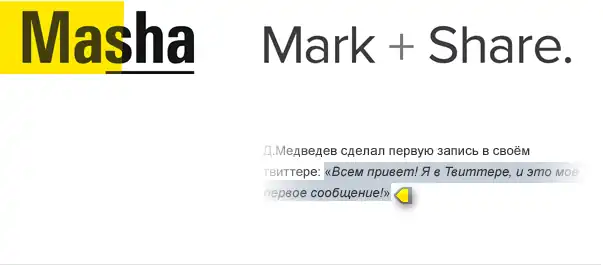 The MashaJS extension adds the ability to mark page content and share it with others using MaSha.JS library.