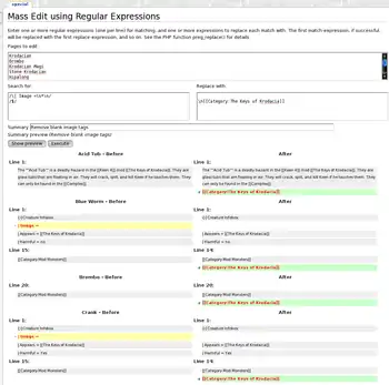 | Description | Allows for using regular expressions to edit multiple pages at once |