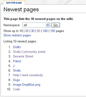 | Description | Provides a list of the most recently created pages on the wiki |