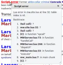 To obtain more information, assign a file path to $wgScribuntoEngineConf['luastandalone']['errorFile'].