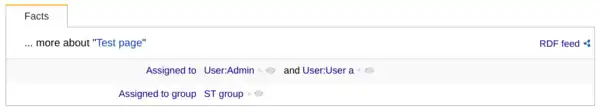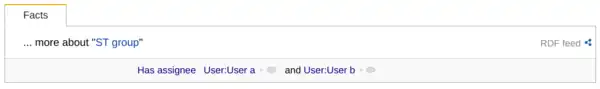 The extension also supports the assignment of task pages to groups. In order to assign a task page to a group create a page named for instance "ST group" and list in that page the assignees of that group in the following form [[Has assignee::User:User a]], [[Has assignee::User:User b]], etc., as follows: