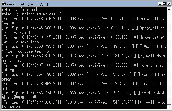 When executing a search in Mediawiki, information as below should appear in your command shell.