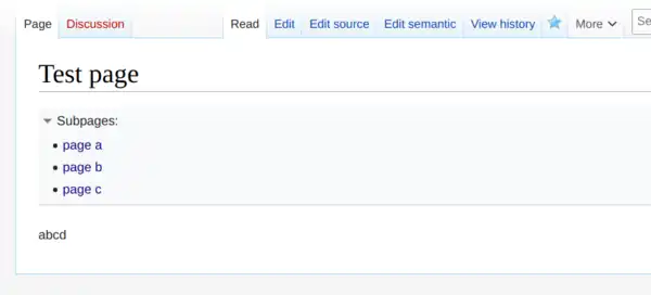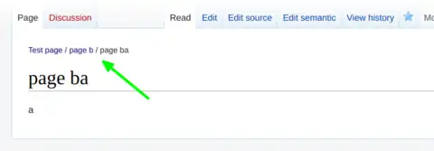 After installation, going in any page of your wiki with subpages, the extension will show an header like the following.