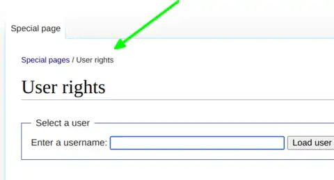 The breadcrumb is also shown on Special pages navigation, so the user can easily return to the list of Special pages.