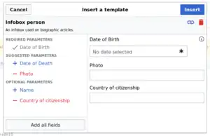 TemplateWizard provides a visual dialog that helps editors insert templates in a guided manner. In order to do that, it uses the TemplateData information that is provided within the template. Please make sure your templates contain the TemplateData definition. For more information on how to add TemplateData to your templates, please see this guide.