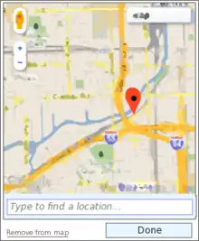 Once the location has been chosen, the user can press "Done" to accept this location. The widget reverts to "closed" state.
