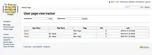 | Description | Tracks user page hits from Special:UserPageViewTracker |