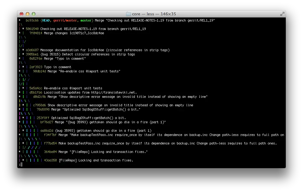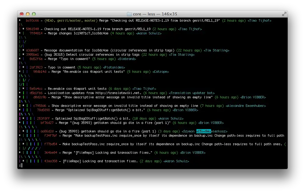 lg = log --graph --pretty=format:'%Cred%h%Creset -%C(auto)%d%Creset %s %Cgreen(%cr) %C(cyan)<%an>%Creset' --abbrev-commit --date=relative