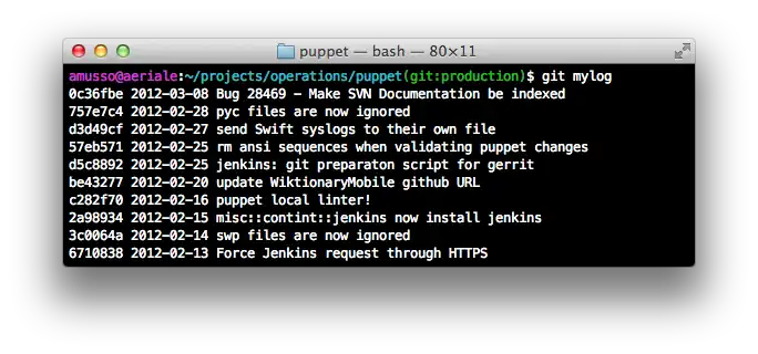 Git is a powerful tool with a lot of useful options. Did you know you can make an alias for a command and a set of options? You won't have to write long shell one-liners anymore. Below is a collection of some useful aliases.