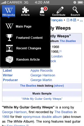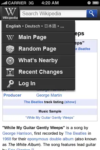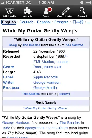 The inter-wiki language links bar is docked to the top bar. It will have a different background color designed to better connect it to the article content.