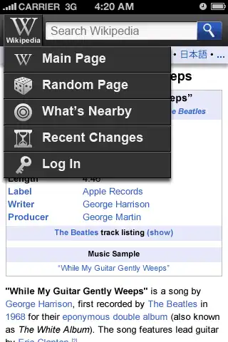 NOTE: This menu perpetuates a poor interaction within Wikipedia, which is the conflation that there are not also histories to discussions and so forth. Solving the greater Wikipedia "tab/sub-tab" interaction is currently outside of the scope of this feature.
