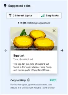 - How to match to interests? Research shows that users are more likely to work on articles that are related to their interests. We are currently prototyping methods to ask newcomers their interests and then find articles that match.