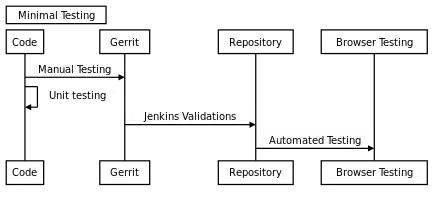 - Automated testing after patch is submitted to Gerrit. This will check patch against jslint, PHP Codesniffer and other syntax errors etc. This procedure (along with release) is well documented at, Continuous Delivery Process diagram[3]