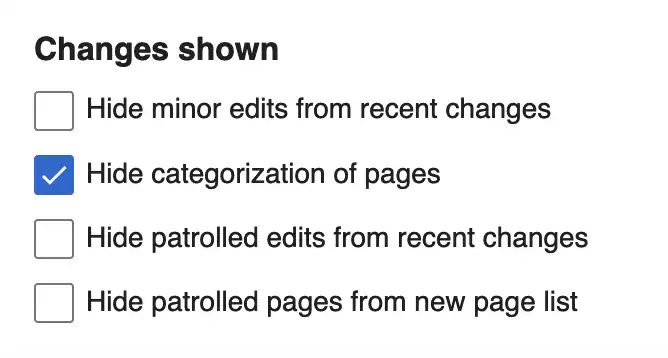 If you have the new edit filters enabled (2018), you can show or hide category changes, by toggling the checkbox on and off for "Category changes" respectively.