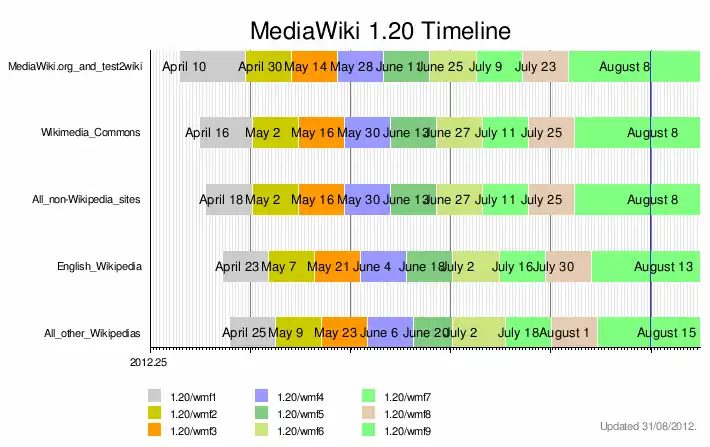 - MediaWiki 1.20/wmf8 — Deployed between July 23 and August 1, 2012