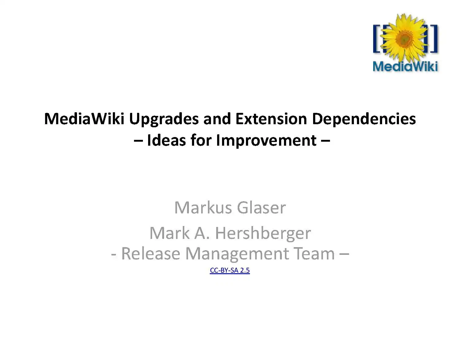 Technically, we'll touch issues of LTS versions, git tagging and branching, Composer support, WikiApiary, usage statistics and crowd certification.