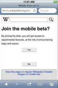 • "Wikipedia is working on a new mobile site! Would you like to test it?"