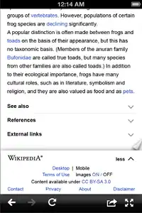 This document describes the design of a way to get to the attributions page (View History) for the developing Wikipedia Mobile Interface.