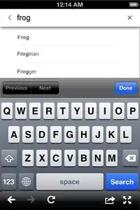 - Touching the search box or "done" makes the keyboard return.