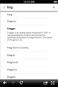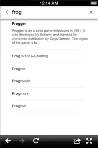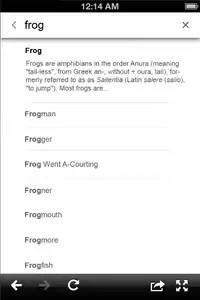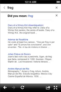 A screenshot showing the Wikipedia search selection result screen