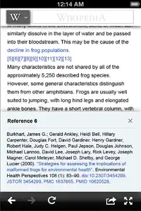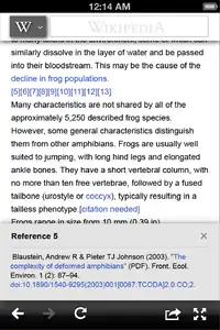- To surface a reference when the footnote number is clicked in an article, in a small window that overlays the bottom of the screen.