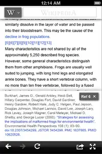 The current mobile references are difficult to navigate and take you away from the page you are reading. This is a UI technique for showing references in an article in a convenient way.