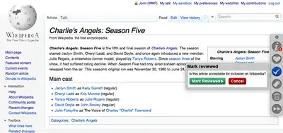 The Curation Toolbar allows users to review pages, mark them as "reviewed/patrolled", tag them with various templates (including deletion templates), and provide gratitude to the authors of articles.