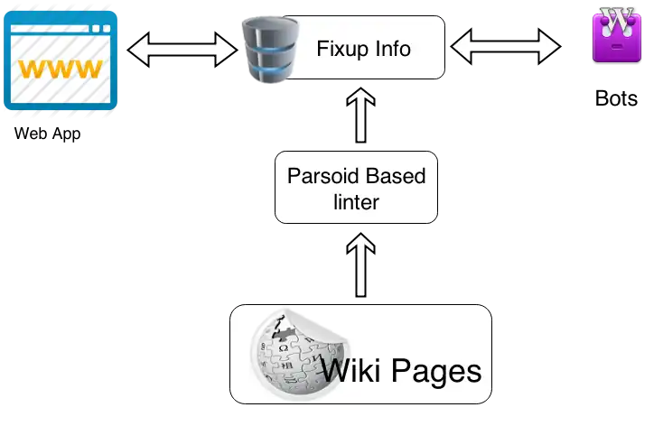 This GSOC project aims to detect broken and deprecated wikitext found on wiki pages and in some cases, possible fixups, using Parsoid. During parsing, Parsoid has access to this information that can help wiki editors know where broken wikitext is and how they can fix it. This tool might be quite useful for the community by communicating this information to wiki editors. Since we don’t necessarily want to reinvent the wheel, we will use existing UI and fixup workflows by feeding fixup information generated using Parsoid to the existing CheckWiki WikiProject. This tool will also help Parsoid developers to collect statistics about use of templates in balanced / unbalanced contexts.