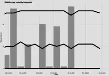 The Velocity forecast shows actual data as bars and forecast data as lines, based on one-week (Sunday to Sunday) snapshots. The lines represent a plausible range of values. The pessimistic forecast is the lowest three weeks of the previous three months; the optimistic forecast is the highest three; and the nominal forecast is the average of all weeks in the previous three months. (For teams using two-week Sprints or other processes in which most tasks are marked Resolved at a different cadence than weekly, this should produce weird-looking bars but accurate lines. Probably.)