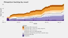 These are reports that show how long work is spending in different stages of progress, such as "in testing" or "in deployment". Phabricator's built-in status field has a very limited range of status, so a full cycle-time report depends on a sequence of statuses typically built with Phabricator's projectcolumn field. These reports are not currently supported in Phabricator but have been prototyped and could be added on demand.