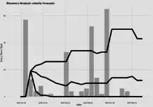 Velocity forecasting. Phlogiston now does simple forecasting of best, worst, and nominal velocity (best 3 weeks in last 3 months, worst 3, and average for whole 3 months) http://phlogiston.wmflabs.org/ve_tranche1_velocity_points.png