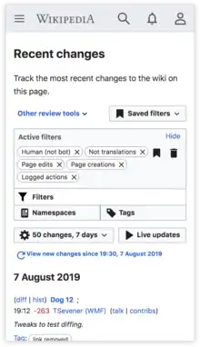 Advanced mode on mobile is a feature set that adds several contributor features/capabilities to the mobile web experience. Advanced mode adds navigational elements and menus that allow easy access to talk pages, history pages, Page information, and various other page tools, user tools, and special pages. Additionally, special pages (e.g. Recent changes and History) have functional parity with the desktop versions. In short, when advanced mode is enabled, the experience of the site via mobile more closely resembles the desktop experience. Some of the key features are: