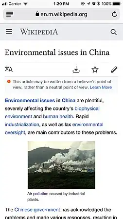 From September to November 2018, we ran A/B tests on the mobile web version of the Latvian, Persian, Russian, Japanese, and English Wikipedias. Our goal was to determine the performance of improvements we made to the appearance of templates that show messages regarding page content (page issues). Previously, the content of these templates was only accessible through a small link at the top of the article, making it difficult for readers and editors to know when the articles they are reading on the mobile website have content issues. Through this work, we made the templates more visible by displaying parts or all of the template text on top of the article. We also wanted to show the severity of the indicated page issue, by displaying each issue template with the severity and color it has on desktop. Our objective for the project was to increase awareness of particular issues within an article on the mobile web. Through this A/B test, we wanted to gain insight on whether this goal was achieved by looking at the rates of interaction (clickthrough) of our new treatment versus the original treatment. We also wanted to gauge the effectiveness of our severity level variants by comparing the clickthrough for issues of different severity levels. Finally, we wanted to assess whether these changes had any immediate effects on the rates of mobile editing. Our hypotheses were the following: