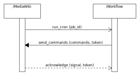 MediaWiki can be used to schedule tasks which affect a workflow, for example a task which simply fires a signal at a given job_id. When the target workflow transitions, it may make calls back into MediaWiki.